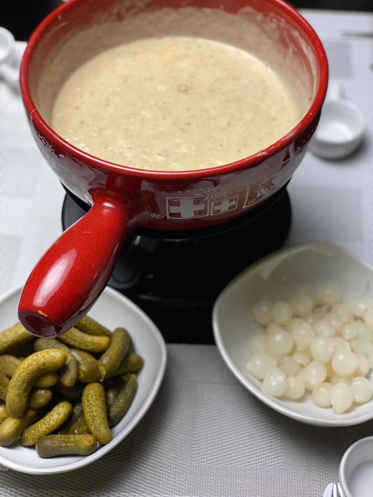Fondue is enjoyed in winter. Losing the bread in a pot constitutes a bad form that comes with a penalty to finish the shot of Kirsch (distilled cherry spirit) or wash dishes