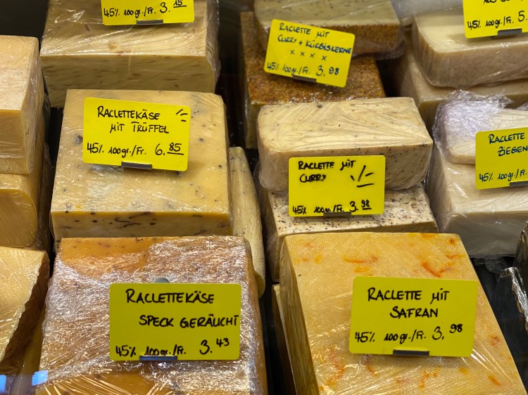 The word Raclette comes from a French word “racler” which means to scrape. Back in the days, Swiss shepherds and farmers needed to bring food to the mountains that would not go bad. After a busy day they would roast potatoes and put the big piece of cheese next to the fire. Once it started to melt, they would scrape it on their baked potatoes