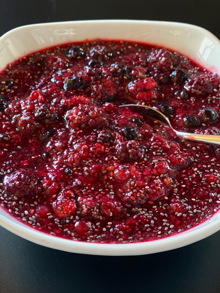 All you need is: fresh or frozen berries, maple syrup and chia seeds.
